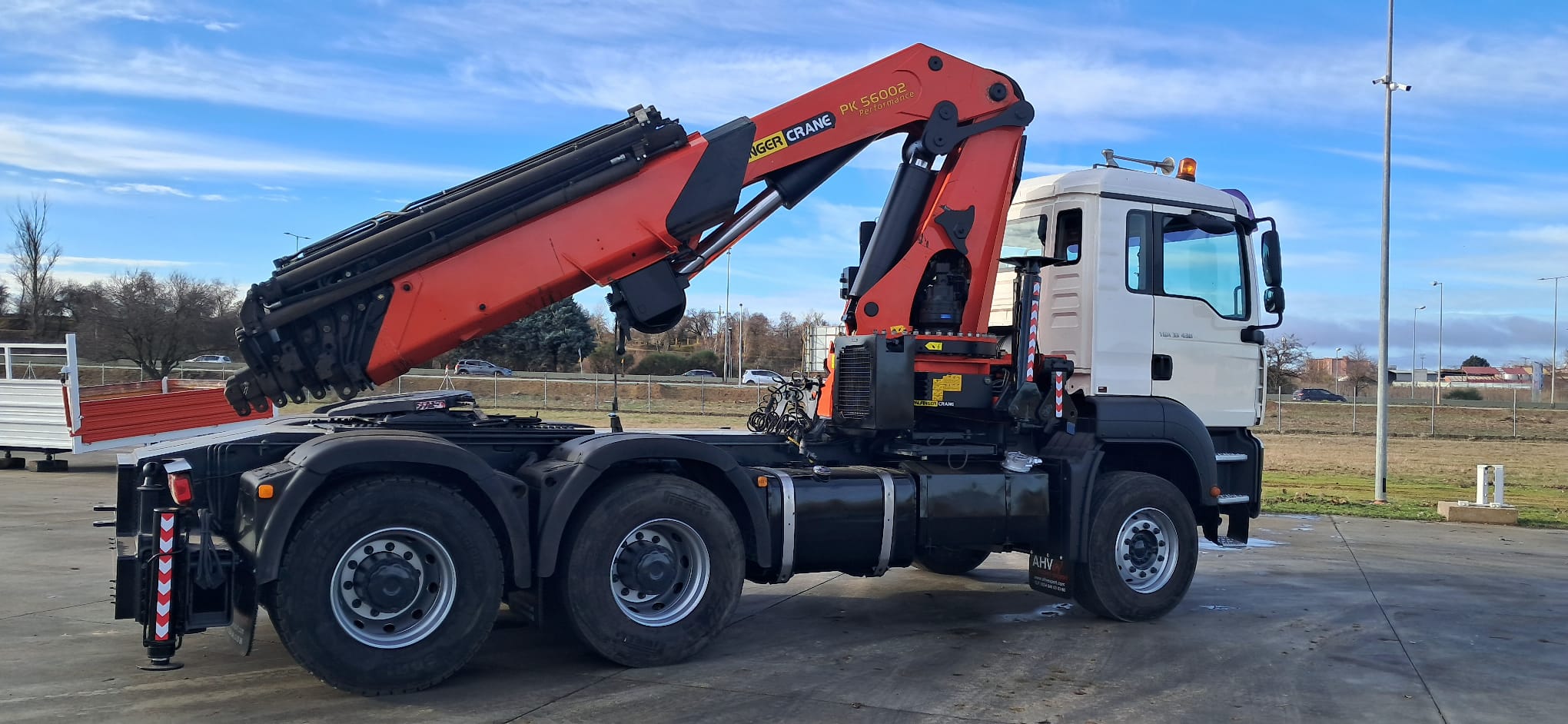 CABEZA TRACTORA MAN 430 6x4, AÑO 2007, CAMBIO MANUAL, KM 440.000, AIRE ACONDICIONADO, PMMA 90.000 Kg, CAJA DE QUITA Y PON, VOLADIZO 1550 mm, PALFINGER PK 56002 G, 8 PROLONGAS HIDRAULICAS + 1 MANUAL, MANDO RADIO CONTROL, 4 PATAS HIDRAULICAS, CABRESTANTE, 7.500 HORAS DE GRUA, PERFECTO ESTADO