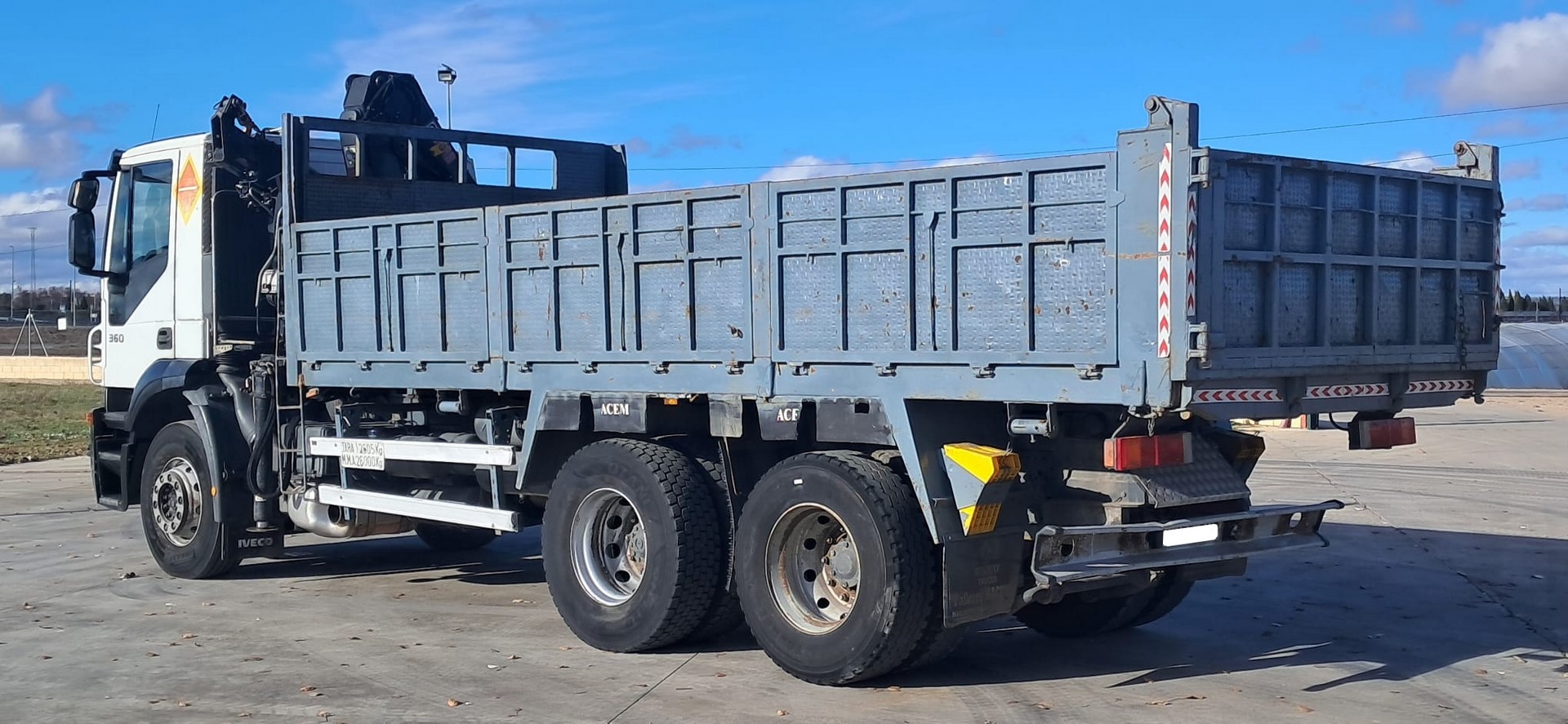 CAMION GRUA BASCULANTE USADO IVECO 360 , AÑO 06-2008 , EURO 4 , TRACCION 6x2 , KM 532000 , CAMBIO MANUAL , AIRE ACONDICIONADO , ELEVALUNAS ELECTRICOS , CAJA 6.000mm , ULTIMO EJE ELEVABLE , CAJA BASCULANTE VOQUETE , HIAB 099 E-3 DUO , 3 PROLONGAS HIDRAULICAS , 2 PATAS HIDRAULICAS , MUY BUEN ESTADO (HIAT HIA JIAB PK 10002 PK10002 PK10.002 PK 10.002 FASSI 100 PK9.002 PK9002 PK 9002 PK 9.002 )