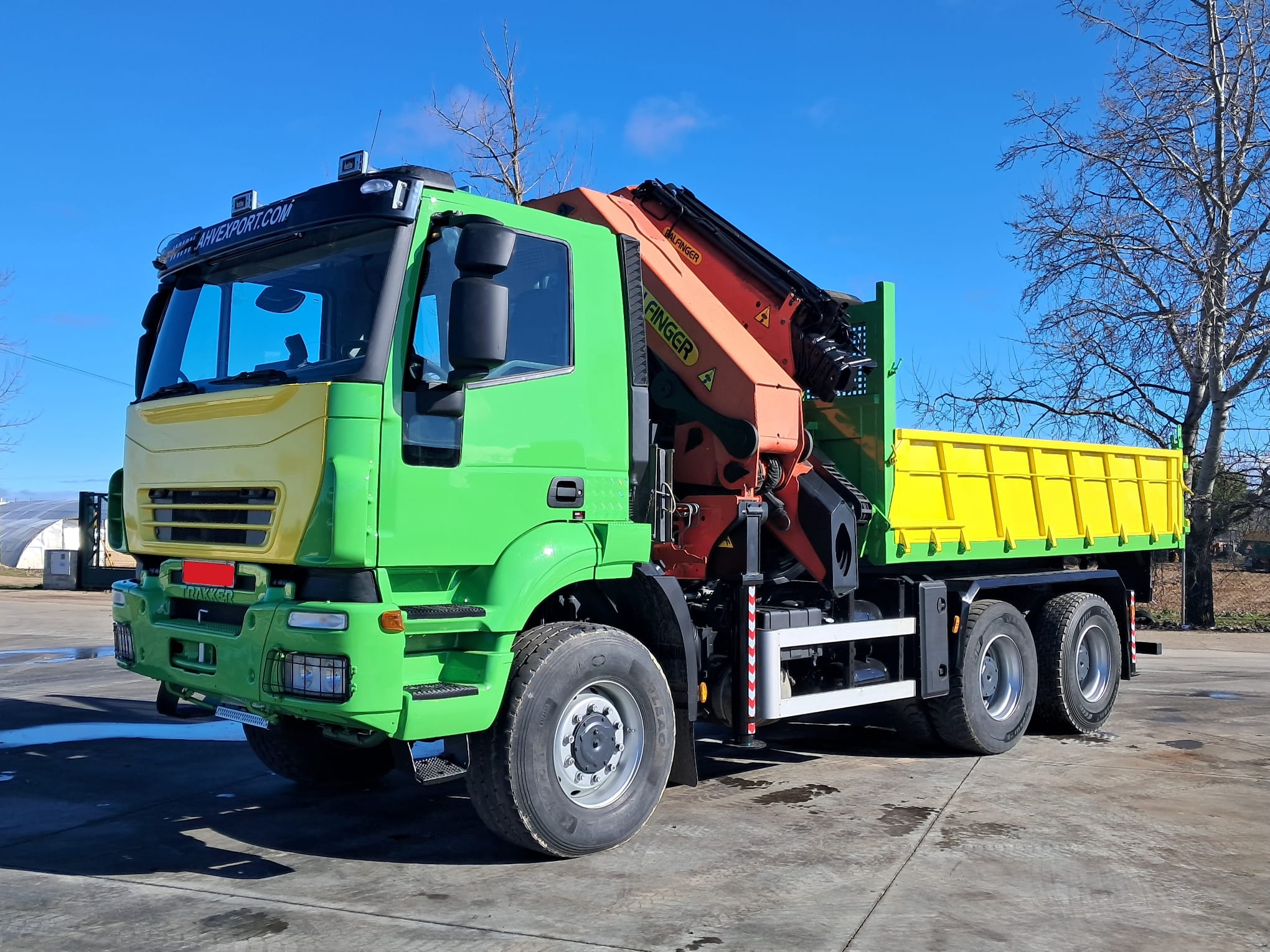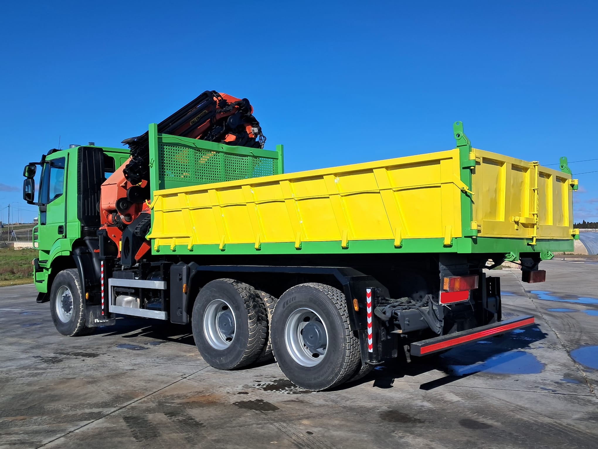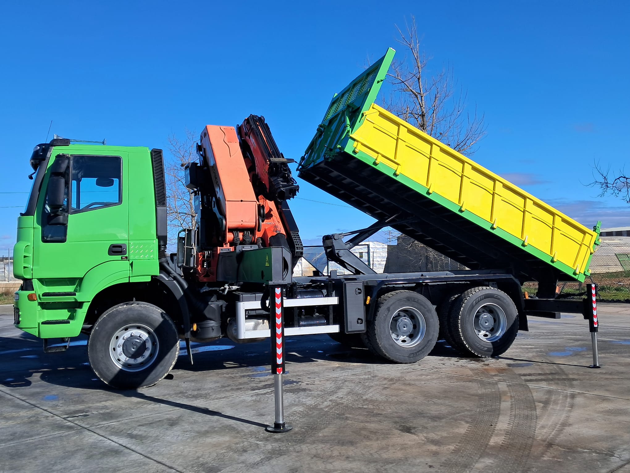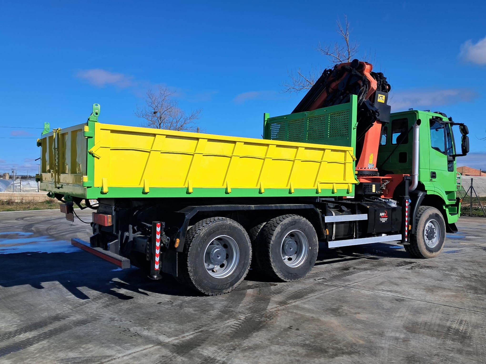 CAMION GRUA USADO BASCULANTE Iveco 450 , Tracción 6x6 , Año 12/2006 , Euro 5 , Cambio automático , cámara trasera , Chasis corto , distancia entre 1er y 2do eje 3.820mm , Caja 4650mm , Laterales apertura hidráulica , Aire acondicionado , Elevalunas eléctricos , Palfinger PK 44002 + JIB , 5 prolongas hidráulicas + 4 JIB + 1 manual , Mando radio , Instalación para cabrestante , 4 patas hidráulicas (PERFECTO ESTADO (PALFINGUER PLAFINGER PLAFINGUER PALFINDER PARFINGER PARFINGUER PK44002 PK44.002 PK 44.002 PK42002 PK 42002 PK42.002 PK 42.002 )