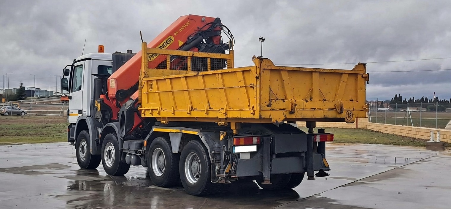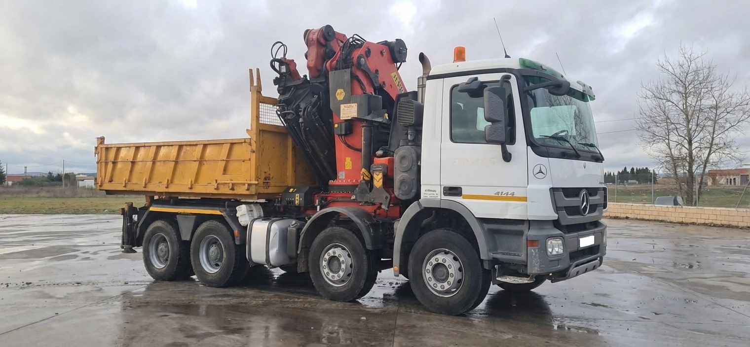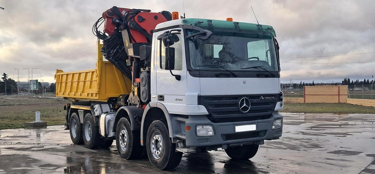 CABEZA TRACTORA CAMION GRUA USADO MERCEDES BENZ 4144 , AÑO 06-2008 , EURO 4 , TRACCION 8x4 , KM 166000 , CAMBIO EPS , AIRE ACONDICIONADO , ELEVALUNAS ELECTRICOS , CAJA QUITA Y PON , CHASIS CORTO , QUINTA RUEDA DESPLAZABLE , PALFINGER PK 100002 + JIB , 8 PROLONGAS + 6 + 2 MANUALES , 4 PATAS LATERALES , 2 PATAS TRASERAS , MANDO RADIO , CABRESTANTE 3.000 KG , EXCELENTE ESTADO (PALFINGER PALFINGUER PALFINDER PALFAINDER PARFAINDER PARFINGER PARFINGUER PK100002 PK100.002 PK 100.002 PK110002 PK 110002 PK110.002 PK 110.002 )