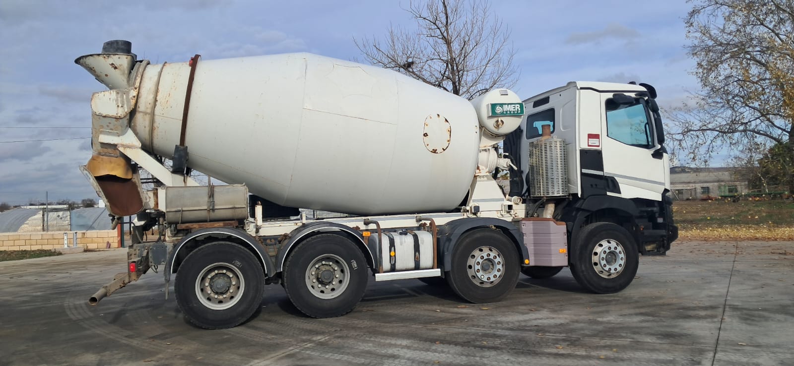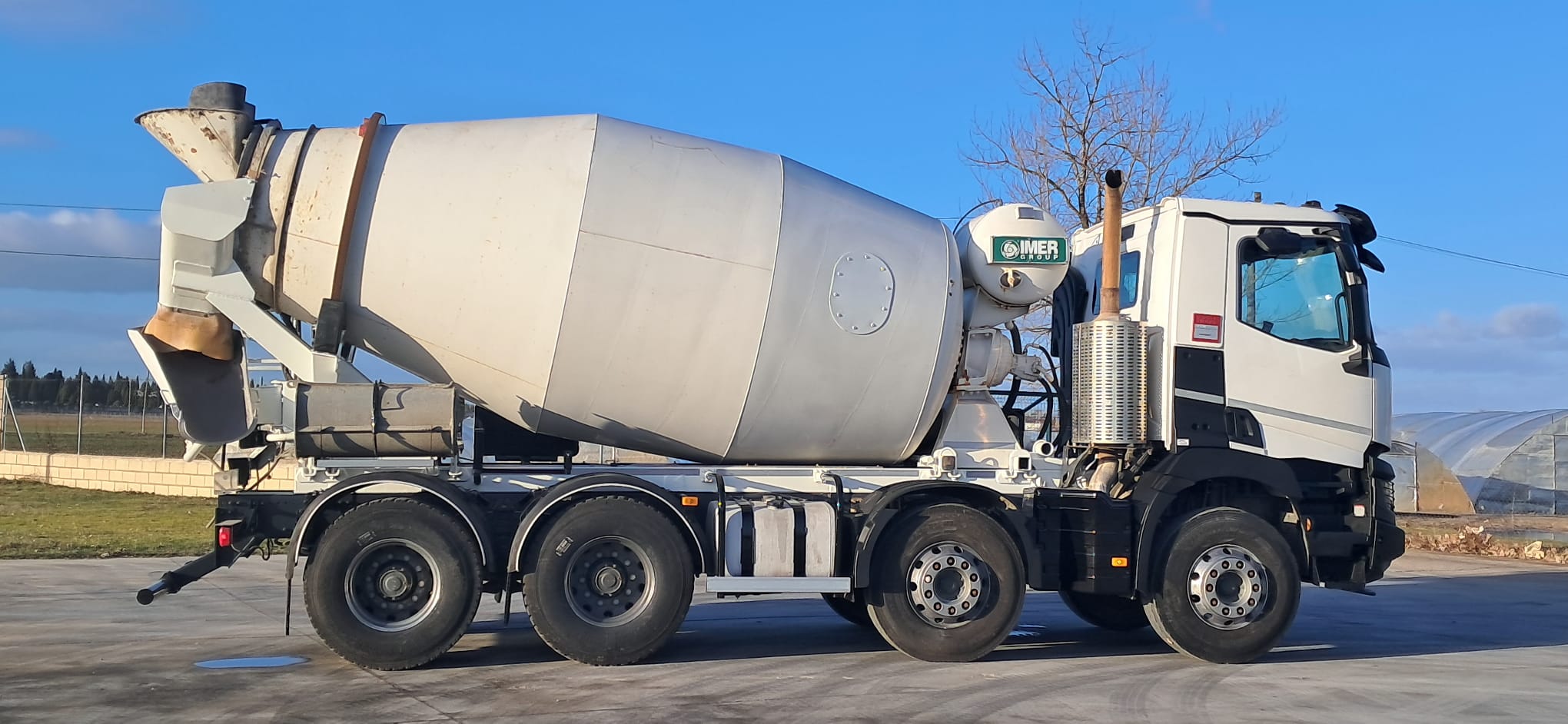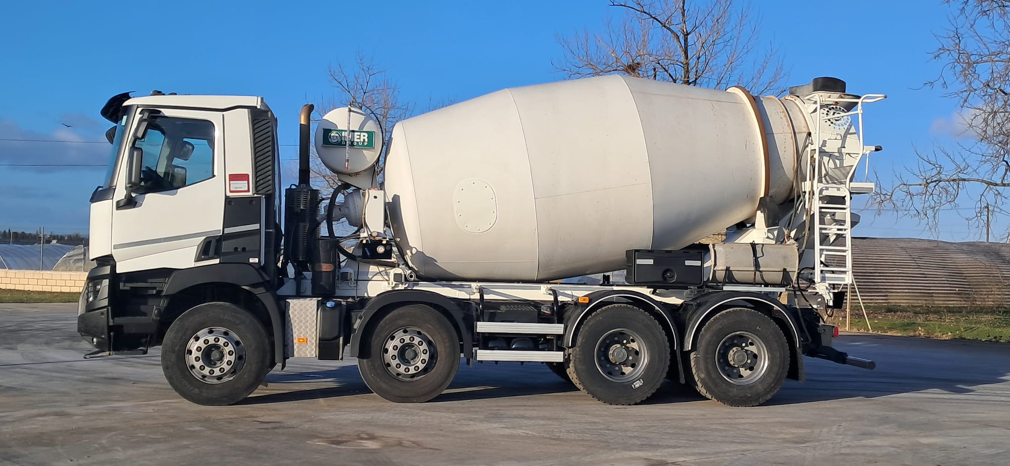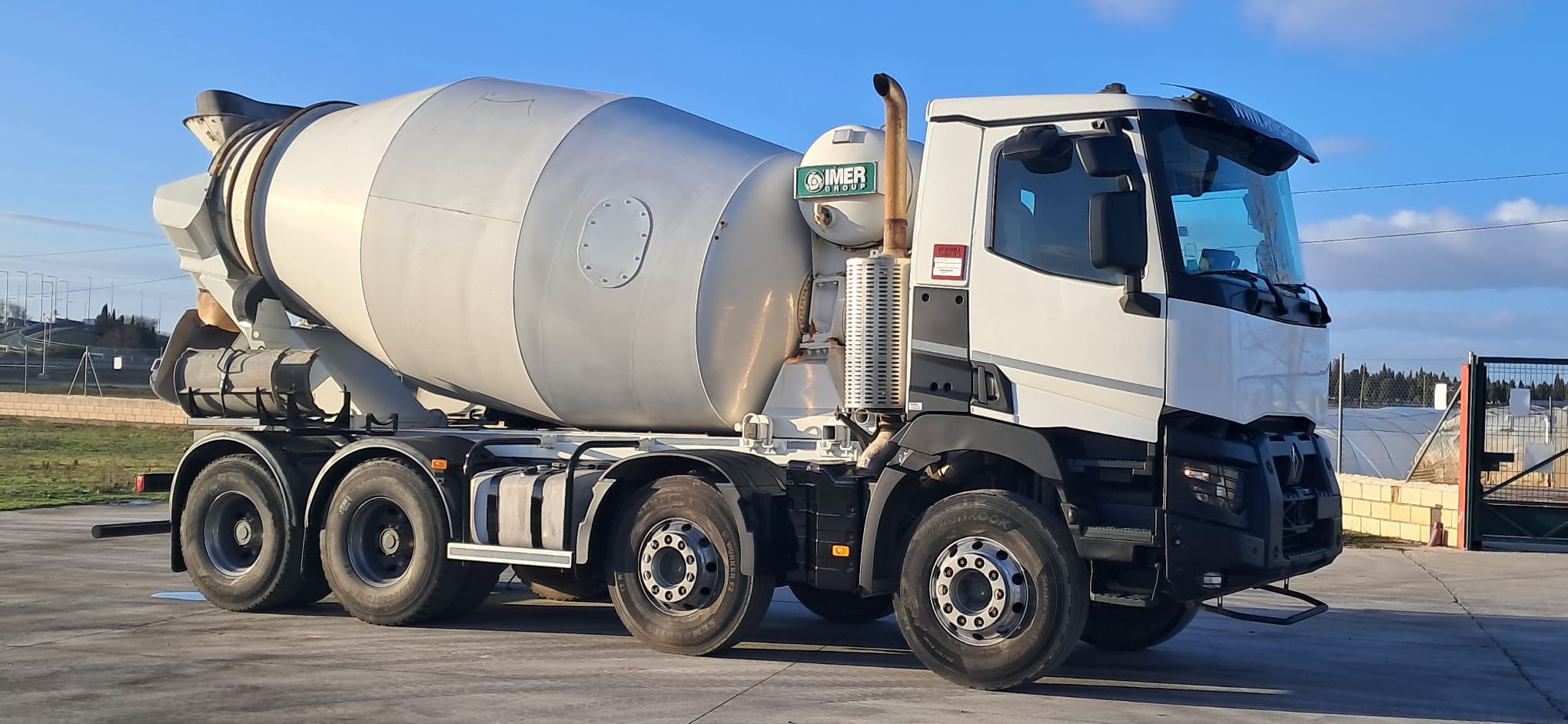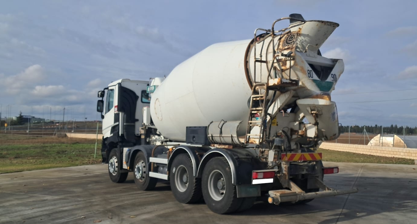 Camión hormigonera usado 8x4 Renault 430 , tracción 8x4 , año 07-2017 , Euro 6 , Km 293000 tara 13.900kg , MMA 32000 kg , cambio automático , aire acondicionado (clima) , cámara marcha atrás , Suspensión Ballestas , Mixer Imer 9m3 , deposito agua 400Litros , Perfecto estado (HORMIGON , CAMION HORMIGONERA , MIXER CAMION )