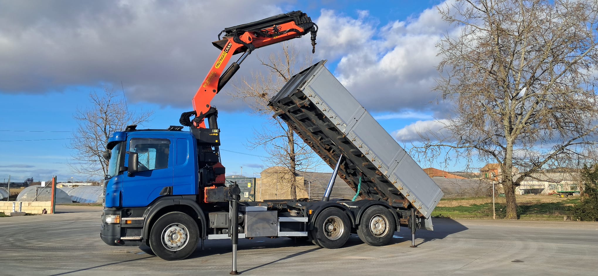 CAMION BASCULANTE GRUA USADO Scania 420 , AÑO 04-2008 , euro 4 , tracción 6X2 , km 248000 , cambio manual , aire acondicionado , elevalunas eléctricos , caja basculante , Volquete trilateral , caja 5.600 mm , ultimo eje elevable , ultimo eje direccional , palfinger PK 29002 , 6 prolongas hidráulicas , Mando radio , 4 patas hidráulicas , EXCELENTE ESTADO (PALFINGER PALFINGUER  PLAFINGER PLAFINGUER  PARFINGER PARFINGUER PALFINDER PALFAINDER PARFAINDER PK29002 PK29.002 PK 29.002 )