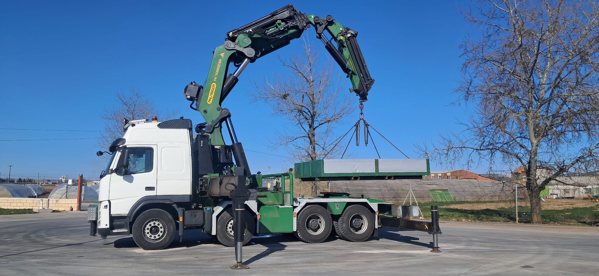 CABEZA TRACTORA GRUA CAMION GRUA USADO , VOLVO 500 , AÑO 08-2013 EURO 5 , TRACCION 8x4 , KM 325.000 , CAMBIO AUTOMATICO , RETARDER , AIRE ACONDICIONADO , ELEVALUNAS ELECTRICOS , CAMARA TRASERA , Distancia entre ejes: 1º al 2º: 1950 mm. , 2º al 3º: 4300 mm. , 1º al 4º 5650 mm , caja quita y pon caja 3450mm x 2480mm , SUSPENSION TRASERA NEUMATICA , SUSPENSION DELANTERA BALLESTAS , PALFINGER PK 110002 + JIB , 8 PROLONGAS + 6 JIB , 7.500 Hs DE GRUA CABRESTANTE , 5 PATAS , 4 PATAS LATERALES , 1 PATA FRONTAL , MANDO RADIO CONTROL , EXCELENTE ESTADO, PERFECTO ESTADO (PALFINGUER PLAFINGER PLAFINGUER PARFINGER PARFINGUER PARFAINDER PALFAINDER PK110002 PK110.002 PK 110.002 PK100002 PK 100002 PK100.002 PK 100.002 )
